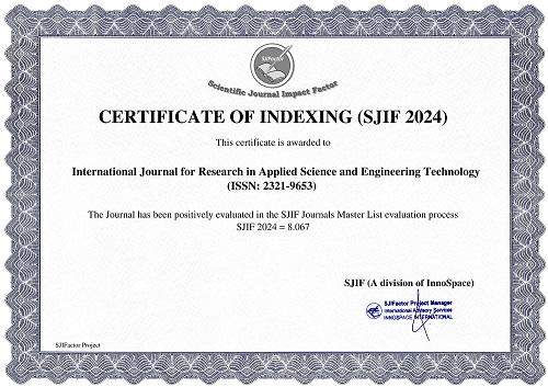 We, International Journal for Research in Applied Science and Engineering Technology (IJRASET) is referred by University for inclusion in UGC Approved Journal List.