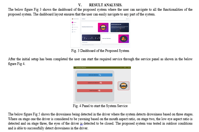 The proposed system is designed to detect drowsiness in a driver through three stages. Detecting drowsiness through stages prevents the driver from getting into a drowsy state at initial stages. The system goes one step further to prevent accidents from taking place where on stage three, the system alerts the emergency contacts as provided by the driver during the registration.