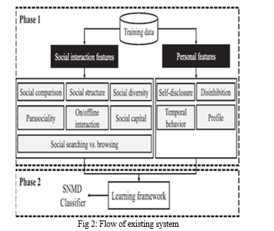 The complex use of social networking follows the enormous rise in popularity. Recently, an increasing number of social and intellectual problems have been identified, including information overload, cyber-relationship addiction, and net compulsion. Numerous studies have found that frequent usage of social media is closely linked to an increased risk of depressive symptoms, anxiety, loneliness, self-harm, and even suicide thoughts. These intellectual problems are now typically detected passively, leading to delayed scientific intervention. Throughout this project, we contend that analyzing online social behavior provides a way to actively find SNMDs early on. Future care and treatment options are made possible by an early diagnosis. Because the intellectual reputation cannot be immediately determined from online social interest logs, it is difficult to identify SNMDs. Therefore, we propose a system learning framework called Networking Site Mental Disorder Tracking (SNMDD), which utilizes features retrieved from familiar social knowledge to as it should be. We advise using SNMD-based Tensor Models to increase accuracy (STM). Boosting overall performance in order to increase scalability. Our methodology is examined personally by 3126 members of online social communities. We conduct a function analysis, follow SNMDD on sizable datasets, and look at the characteristics of the three SNMD kinds. The outcomes show that SNMDD is effective in identifying online social community users who possess SNMDs.