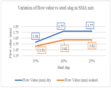 Figure 6: Variation of flow value for modified SMA mix with different proportion of steel slag