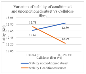 Figure 7: Variation in Marshall stability vs modified SMA mix optimized Steel slag and cellulose fiber