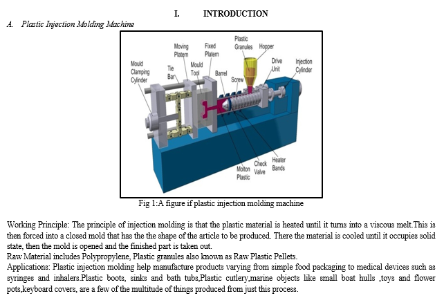 The company in which studies are done manufactures variety of plastic products .The company has more than a dozen of Plastic Injection Molding machines. By using the Injection molding machines company produces multiple plastic products such as Container caps, Bowl, Plate, Tub, Tiffin Box, Basket, Tray, Brackets, Mugs, Soap Case, Candy box, Toys, etc. Approximately 400 different types of plastic products are manufactured .The weight of this manufactured products ranges from 50 grams to 350 grams. The above products are manufactured by the team work of 40 workers.