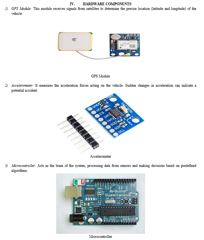 Accident Detection Algorithm: This algorithm analyzes data from the accelerometer to detect abrupt changes in vehicle dynamics, such as rapid deceleration or impact forces.