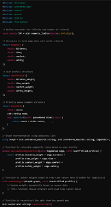 The implementation also includes an interface for user input, where individuals can define their preferences and weights for the pathfinding criteria. Real-time data is simulated using dynamic inputs that change during the execution of the algorithm, mimicking real-world scenarios.