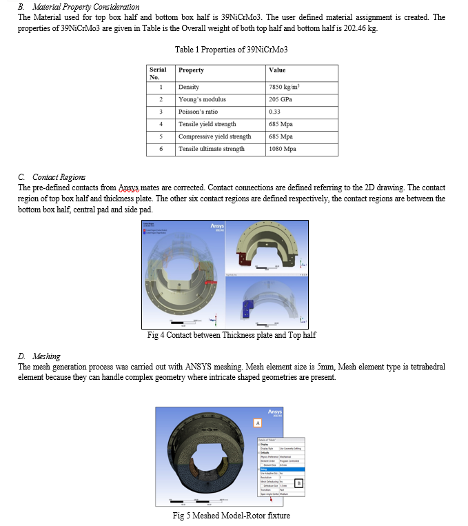 In conclusion, the rotor fixture is redesigned to reduce the weight and keeping the same or more stiffness of material by applying the Topology optimization method using mass response constraint. Optimizing the components by redesigning to satisfies the research objectives. Static structural analysis is carried out to know the behaviour of stress and deformation in the rotor fixture. For existing design, the maximum stress value of rotor fixture is 6.9153 MPa and the maximum deformation is 0.00251 mm. For new solid body design, the maximum stress value of rotor fixture is 9.8341 MPa and the maximum deformation is 0.00275 mm. For new shell body design, the maximum stress value of rotor fixture is 27.487 MPa and the maximum deformation is 0.00709 mm. Conventional machining cost for rotor fixture is € 9450 which will have a Leadtime of 63 days. But the Metal Additive Manufacturing cost for printing rotor fixture is 17 % higher which is € 11440, and which will have a 46% reduction in Lead time of 34 days.