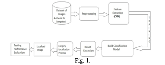 The technique for detecting picture forgeries establishes whether the image has been altered. A adequate is required to ascertain whether or not a specific image is fabricated. Features based on convolutional neural network (CNN) models are effective features to classify the category image because existing approaches for feature extraction based on handcrafted features or feature engineering and not invariant to various types transformations, geometrical, and post-processing oper- ations. Additionally, feature extraction and feature engineering are crucial and tasks that take a lot of time in today’s CNNs because the deeper layers of the network involve several layers of neurons processing data that gets more complex. The primary benefit of CNN and deep learning is their ability to automatically learn relevant features.