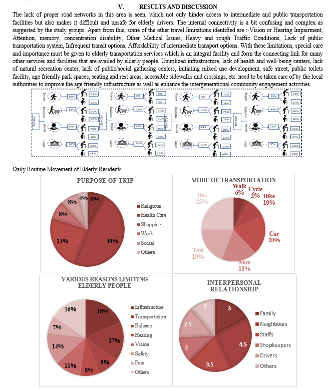 The ageing population is a growing demographic globally, posing new issues and opportunities for urban development. Creating supportive and inclusive neighbourhoods for the elderly is critical to ensuring their well-being, independence, and quality of life. This necessitates a comprehensive, three-dimensional approach that includes transportation, social interaction, and outdoor places. Each of these categories is crucial for creating a unified environment that fits the physical, social, and technical demands of the aged. Transportation is critical to ensure that older people may keep their independence and obtain necessary services. This includes constructing accessible public transport, establishing well-maintained and safe walking trails and providing community transport services tailored to the elderly. Social participation involves creating strong community connections and offering chances for social engagement. Outdoor areas serve an important role in fostering physical and mental wellness. Accessible parks, community gardens, and safe, well-lit public areas are critical for stimulating outdoor activity while also providing opportunities for social contact and relaxation. Incorporating technological solutions along these dimensions improves connectivity and safety. Real-time travel information, virtual participation platforms, and smart infrastructure help to create an environment in which the elderly can thrive.