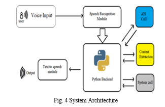 The system makes use of the Python-text-to-speech (pyttx3) package for speech rearrangement. Text input from users is converted using it. Python's pyttsx3 library contains built-in text-to-speech and speech-to-text converters. It increases user interaction with the system.