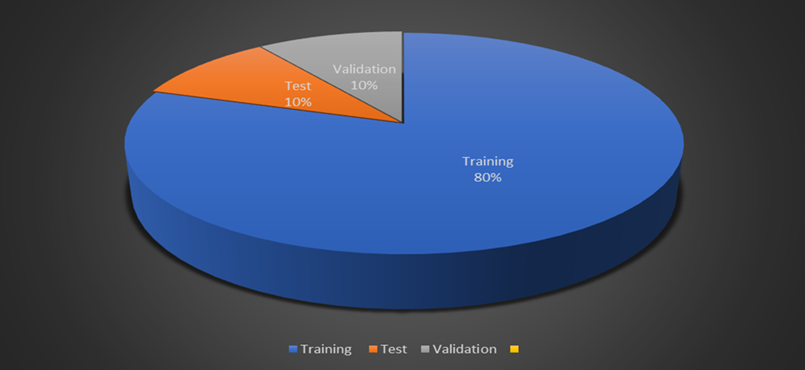 The figure is a pie chart which represents the position of data in a machine learning context which is mostly used in the training process of a model. Before proceeding it is important to gives an insight of the make-up of this component, which includes: