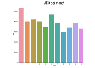 The shown line graph offers a perceptive look at the typical daily rates for both city hotels and resort hotels over a period of time. The variability in these prices becomes instantly clear, with city hotels occasionally providing cheaper average daily rates than their resort equivalents. Furthermore, this pattern isn’t constant; it changes on different days, with some showing much more obvious price variations. This variation leads logically to the conclusion that weekends and holidays have a substantial impact on resort hotel rates. The rates at resort hotels frequently increase during these festive times. This pattern can be ascribed to the increased demand for lodging on the weekends and during major holidays, when people are looking for relaxing vacations and experiences that resorts are best suited to deliver. On the other hand, city hotels usually provide more affordable rates during regular weekdays and non-holiday times, making them a desirable choice for business travelers or vacationers looking for affordable options. This finding emphasizes how flexible pricing methods are in the hotel business, which adjusts them to the ebb and flow of demand related to days and seasons.