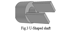 2. U-Shaped Shaft: The U-shaped shaft is used to connect the pneumatic cylinder & connecting rod, this shaft is made up of mild steel and the weight of the shaft is 450g. it has 3 drill holes, the first two holes is used to fix the connecting rod with the diameter of 9mm and the one large hole is used to fix the pneumatic with the diameter of 16mm.