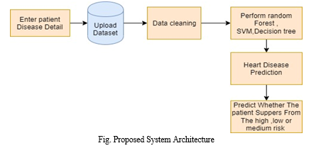 We are leveraging data from the UCI Repository for the prediction of heart disease and heart risk. The dataset includes 12 attributes, including age, sex, the type of chest pain, blood pressure, cholesterol, the number of major blood vessels coloured by fluorescence, fast blood sugar, the ST segments that are induced by exercise relative to rest, the peak exercise ST segments, defect values, and exercise-induced angina, among others. The real heart disease prognosis was made using these characteristics. The risk of heart disease is calculated using the results of both the KNN and the Naive Bayes algorithms, but in this case, we primarily use the results of the Naive Bayes algorithm to estimate the risk in percentage terms and to show whether it is high, low, or medium.