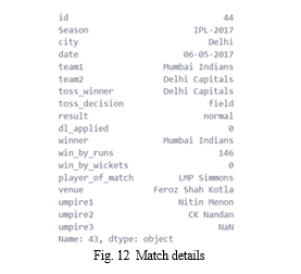 [2] focused on estimating the location of a moving ball using data from a cricket sensor network. Roy et al. [3] developed a ranking system that incorporated social network factors and utilized a distributed framework based on Hadoop and the MapReduce programming model for data processing. Their approach involved evaluating the composite framework. Priyanka et al. [4] predicted the outcome of IPL-2020 by employing Data Mining Algorithms on IPL datasets from 2008-2019, achieving an accuracy of 82.73%. Kansal et al. [5] utilized Data Mining Techniques to predict player evaluation in IPL based on datasets from 2008-2019. They employed data mining algorithms to assess player performance, determine their base price, and aid in player selection for the IPL. Decision tree, Naïve Bayes, and Multilayer Perceptron (MLP) algorithms were used, with MLP demonstrating superior performance compared to other algorithms. Agrawal et al. [6] employed Support Vector Machine (SVM), CTree, and Naïve Bayes classifiers to predict the probability of match winners, achieving accuracies of 95.96%, 97.97%, and 98.98%, respectively. Barot et al. [7] predicted match outcomes based on factors such as the toss and venue. Kaluarachchi et al. [8] predicted match outcomes using the Naïve Bayes classifier, considering home ground, match time, match type, winning the toss, and batting first. Passi et al. [9] addressed two classification problems: predicting player performance based on runs and the number of wickets. They employed machine learning algorithms to classify the runs and wickets into different ranges, with the Random Forest algorithm outperforming other algorithms. Nigel Rodrigues et al. [10] predicted the traits of batsmen and bowlers in current matches, assisting in player selection for upcoming matches by leveraging past performance data and employing Multiple Random Forest Regression. Wright [11] predicted possible cricket match fixtures by considering various factors such as venue, teams, and the number of holidays between matches. They employed a metaheuristic procedure called Subcost-Guided Simulated Annealing (SGSA) to progress from initial to final solutions. Maduranga et al. [12] predicted match outcomes using data mining algorithms and offered solutions based on the approaches used by other authors. Shetty et al. [13] predicted player capabilities based on factors such as the ground, pitch type, and opposition team, utilizing machine learning techniques. The above discussed research focused on evaluating the performance and accuracy of these models in predicting match outcomes. The findings of this study are particularly relevant to this paper as they provide insights into the effectiveness of machine learning techniques in the context of predicting IPL match outcomes.