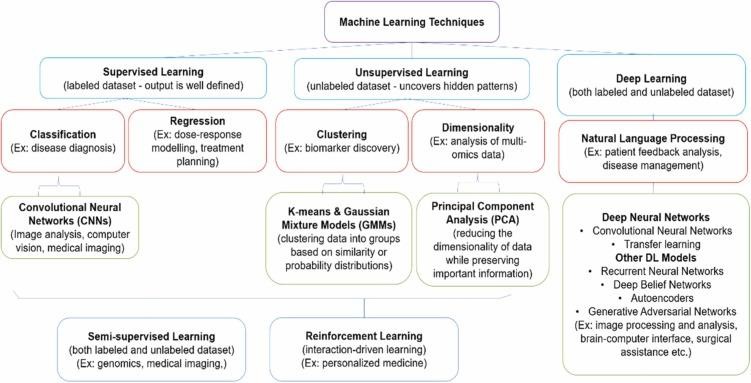 Fig 4. A simplified mind-map showing the classification of ML models for biomedical applications.