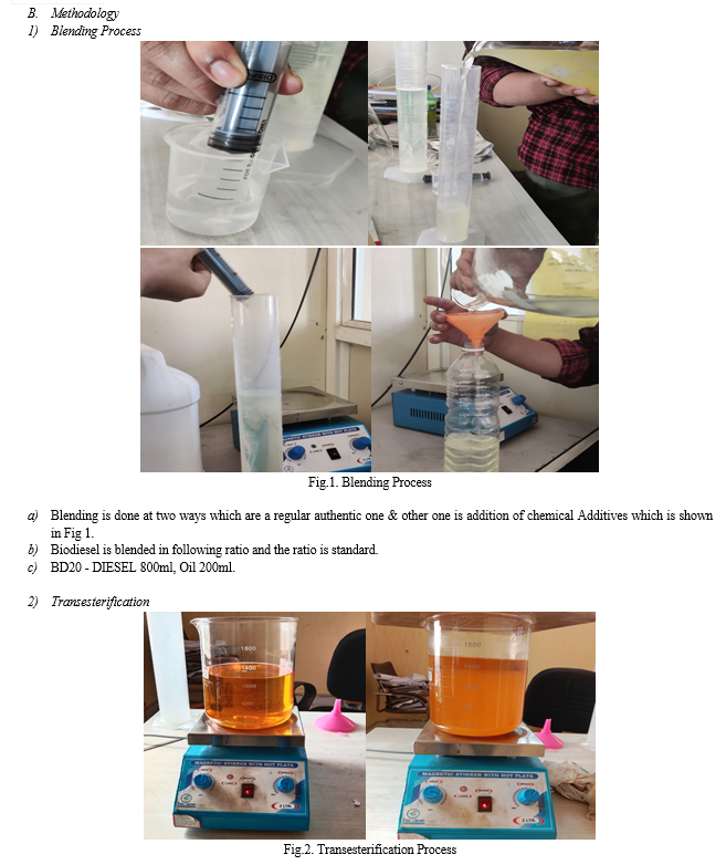 a. The transesterification process is shown in Fig 2. The working oil of 1200ml is heated up to 40?C on a Magnetic Stirrer or Mixer.