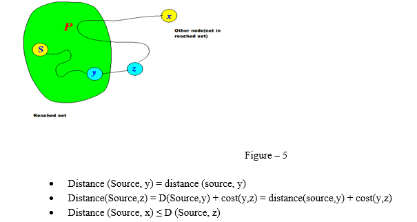 P is the real path from Source to x, z is the vertex that is not in the set, y is the predecessor of x( Figure – 5 )
