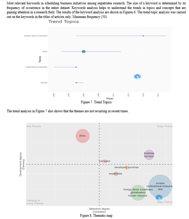 Business initiatives including entrepreneurship, start-ups are having advanced significantly over the past few decades as a result of entrepreneurship academics strong commitment to expanding its theoretical foundation through increasingly sophisticated research. There are many chances for multilevel study because the field of entrepreneurship can be studied from a variety of perspectives, including disciplines, functions, and contexts (Audretsch et al., 2019; Douglas & Prentice, 2019). The need for more rigour in quantitative business research is currently very strong. Currently, (Maula & Stam, 2020) point out there is a significant movement towards enhancing the thoroughness of quantitative research in business. This shift is motivated by various recent advancements, including the realization that commonly used empirical methods in business research have significant drawbacks, a general unease about the ability to reproduce previous findings in social science research, and the rapid progress in research techniques that enable the execution of more rigorous investigations. Research on expatriates (Dabic et al., 2015) can be categorized into two distinct yet interconnected areas: human resource management (HRM) and practices, and international business management (IBM). Given the extensive empirical research conducted over the past four decades, there appears to be a need for a comprehensive review to establish a solid groundwork for developing a theory of expatriate management. An expatriate can also be an individual who has relinquished citizenship in their home country to become a citizen of another. In the cross-cultural adjustment literature, expatriates (Peltokorpi & Froese, 2009) have traditionally been portrayed as a uniform and diverse group. Nevertheless, recent studies have started to differentiate between two specific types of expatriates: organizational expatriates (OEs), who are sent by their home companies to international assignments, and self-initiated expatriates. Bibliometric analysis (Osareh, 1996) examines metadata extracted from academic research databases to offer a comprehensive overview of the current advancements within a specific research field. It is evident that (Velt et al., 2020) one of the research methodologies that facilitate the execution of more rigorous studies in this field is bibliometric analysis. In comparison to other approaches for literature review, bibliometric studies possess the potential for greater stringency, reduced bias, and provide an overview of the scientific literature within a specific domain, thus complementing meta-analyses and systematic literature reviews. Metadata comprises (Zupic & ?ater, 2015) essential elements, including source titles, abstracts, keywords, authors, references, and citation counts. These databases provide valuable information that can be utilized for various analyses and visualizations, shedding light on the research landscape. Through bibliometric studies, one can gain an understanding of the current scope and progress of a particular research field, examining publication and citation records. Additionally, these studies can assist in identifying intellectual frameworks, thematic clusters, and their corresponding findings.