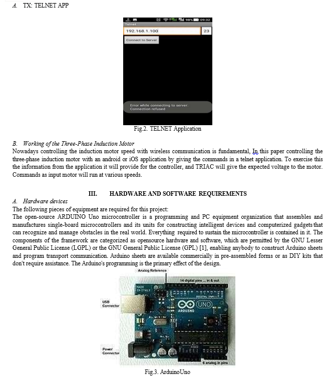 A Three-Phase Induction motor is basically a consistent speed motor which makes it difficult to control its speed. The speed control of induction motor is achieved by reducing the efficiency and low power factor. Interface section includes step-up transformer and motor, AC is fed to step-up transformer which converts 12 Volts to 220 Volts which drives motor. Generate two pulses at 5 and 6 pins of Arduino and send these two pulses to the input. The change in delay between the pulses is in user’s hand.