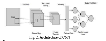 After convolution, an activation function like ReLU (Rectified Linear Unit) is applied element by element to the network to introduce non-linearity. CNNs may learn intricate correlations in the data by doing this. By down sampling, pooling layers decrease the spatial dimensions of the feature maps. For example, max- pooling reduces computing complexity while preserving the most significant information by choosing the maximum value within a small region. CNNs usually consist of one or more fully connected layers following a number of convolutional and pooling layers. These layers carry out conventional neural network functions and flatten the high-dimensional feature maps into a vector. It is their duty to forecast the future based on the features that have been retrieved.