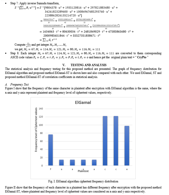 Thakkar and Gor [18] (2022) developed a cryptographic method using the ElGamal algorithm and Mellin Transform to improve security of communication. The frequency test and statistical analysis on the proposed method are provided in this work.