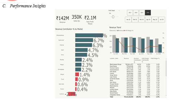 We are all always thinking about the future and what is expected to happen in the coming weeks, months, and even years, and in order to do so, a look into the past is required. Businesses must be able to see their development and the factors influencing their sales [1]. In this technological era of large-scale data, organizations must reconsider current techniques to better understand clients in order to achieve a competitive advantage in the market. Data is useless if it cannot be analyzed, comprehended, and applied in context [2]. In this effort, we leveraged AtliQ sales data to create business value. A picture is worth a thousand words, and business analytics may assist in creating a picture by visualizing data to provide retailers with business insights. With these insights, firms can make meaningful modifications to their future plan to maximize profitability and success. Most raw data, particularly large scale databases, are worthless in their unprocessed state. We can extract valuable insights from this stockpile of bits by using the Power BI tools [3]. The primary goal here is to read and analyze the available datasets from AtliQ in order to generate insights and an overall view of the firm. Any organization, business, or company's success is dependent on its sales department, because it is the sole element of the organization that earns revenue and money and brings it to the table. The significance of sales is as follows: