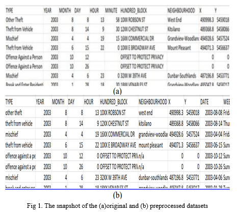 Crime is a socioeconomic issue that has a negative impact on life quality and economic progress. Depending on the type of civilization and community, the intricacies of how crime is committed differ. Previous crime prediction studies have discovered that characteristics such as education, poverty, employment, and climate have an impact on crime rates. The most populated, ethnically diverse, and multi-cultural metropolis in Canada is Vancouver. Although Vancouver's general crime rate decreased by 1.5 percent in 2017, significant vehicle break-ins and theft remain a problem. The Vancouver Police Department (VPD) recently deployed a crime predictive model to predict crimes linked to property break-ins, and the city of Vancouver saw a 27 percent reduction in home break- ins after it was installed. Crime prediction is a tactic used by law enforcement. Technique for identifying the most likely crimes based on data and statistical analysis. This area in many regions of the world, study is still ongoing in the world. Machine learning is the science of allowing computers to make decisions. Without the need for human involvement Machines have recently learning has been used in self-driving cars and voice recognition. Web search, recognition, and a better grasp of the human genome It has also made crime prediction based on data easier. Data with references possible the process of classification is supervised. Nominal class labels are allowed in this prediction approach. Weather classification has been applied to a wide range of applications. Forecasts, medical care, financial and banking services, and homeland security business intelligence and security. Data collection, categorization, pattern identification, prediction visualization, and association analysis are all part of machine-learning-based crime investigation. Traditional data mining techniques such as classification and prediction, cluster analysis, and outlier analysis find patterns in structured data, whereas newer techniques find patterns in both structured and unstructured data. The project's main purpose is to create a model that can accurately anticipate crime. The VPD crime dataset was examined using two classification algorithms: K-Nearest Neighbour (KNN) and enhanced decision tree, which was generated between 2003 and There were around 560,000 records in 2018. The data was processed using two different methodologies: