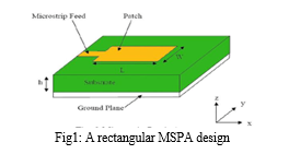 The performance characteristics of the antennas are mainly structures, and the material properties from which they are made. In this study, the rectangular patch shape selected because it is easy to angular patch shape selected because it is easy to design and analyze and it has wide bandwidth by reason of its broader shape as compared to other types. The physical structure of the examined MSPA is given in Fig - 1.