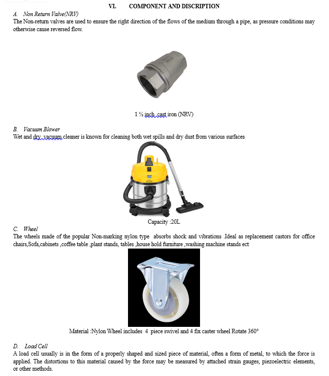 The vehicle load is displayed in the LED or LCD display.A vacuum based grain collector which collects the grains from concrete area or ground by suction process. The important components are Frame, V-plate, vacuum cleaner, load cell and wheel. Machine is electrically operated. As the machine is moved, grains are collected by V-plate. Due to vacuum, hose sucks the collected grains and is filled in the dustpan. When the machine is switched off, valve fixed below the dustpan gets (NRV) opened and grains directly fall into the collecting bag. Load cell fixed below the load bag will determine the weight and displayed automatically in the LED display.