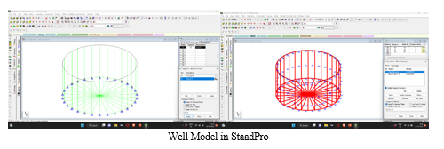Analysis of forces acting on RCC well by the surrounding soil and water present in the well as per IS:3370 (part II and IV).