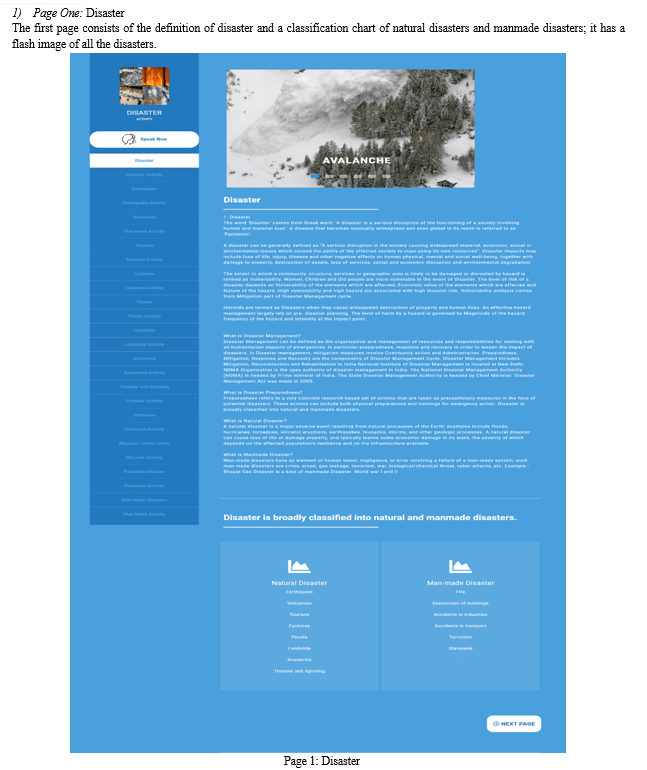 This interactive multimedia package is such an edutainment that serves the purpose of teaching learning in the present scenario. This is an educational module on disaster management which has been prepared by using the HTML CSS, JAVASCRIPT .