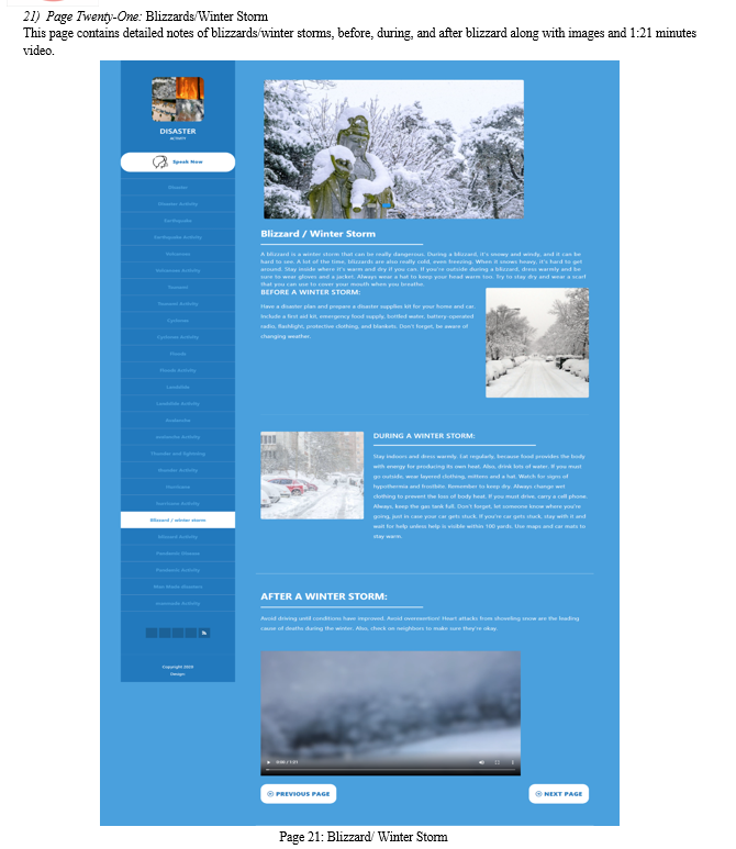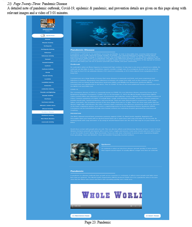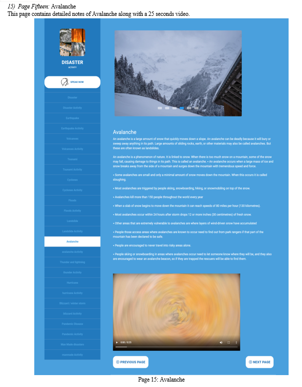 The interactive package has text, images, video, animation, and activity. The entire package has the ‘Speak Now’ option which is disable friendly; it will enable the entire content to be read. Each page has the option to go for the previous page and the next page.