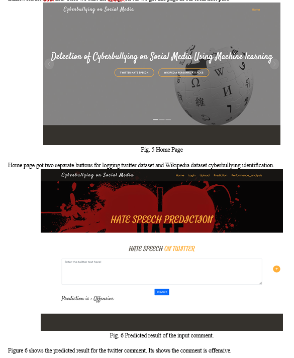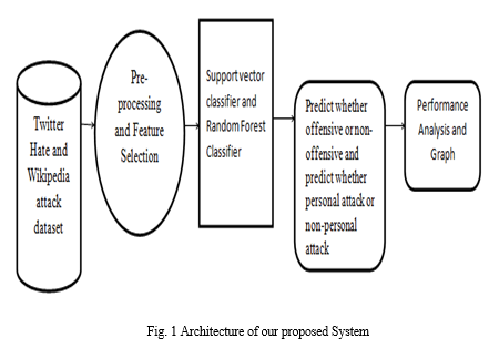 We used SVM for twitter data and Random forest classifier for Wikipedia data for identifying cyber bullying. SVM offers very high accuracy compared to other classifiers such as logistic regression, and decision trees. It is known for its kernel trick to handle nonlinear input spaces. It is used in a variety of applications such as face detection, intrusion detection, classification of emails, news articles and web pages, classification of genes, and handwriting recognition.