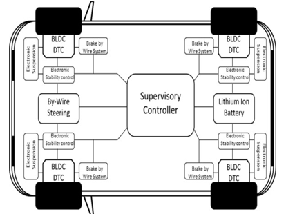 DEA of the use of electricity in preference to fossil fuels for propulsion system of cars is not new. Scientists and producers have attempted to design or improve electric powered automobiles from long term ago. Rodert Anderson constructed the primary electric powered carriage in 1839. In 1870 David Salomon developed an electric powered car with a light electric powered motor. The batteries had been heavy at that time; consequently performance became terrible [1]. nowadays hybrid vehicles are extra famous due to higher mileage and absence of enough infrastructures for charging battery of electrical vehicles. applying in-wheel technology will increase performance and safety of electric vehicles. using in-wheel generation, by using twine generation and wise manipulate structures in preference to traditional hydraulic or pneumatic control systems end result to an wise fully Electronically controlled vehicle (IFECV) [2]. Schematic diagram of 4 wheel force educate of an IFECV is shown in Fig. 1.