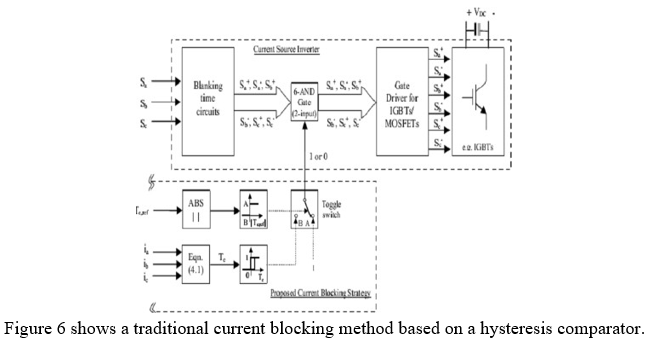 The activation to switch OFF all IGBTs/MOSFETs in current source inverter will perform if the torque production, Te and torque demand, Te,ref decrease to zero. For clearer picture, the condition of the activation is illustrated in Fig 7. Otherwise, normal switching opera-tion to keep the current (or torque) to be regulated within the hysteresis band will perform.