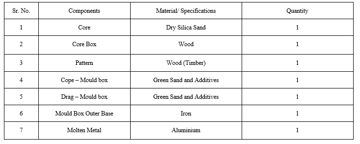 A. List of Components and their materials used sand casting of Fork end.