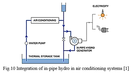 The inline hydroelectric generation system (IHGS) captures the essential little power inside the water pipelines and generates electricity for the monitoring system, as shown in Fig.29. This IHGS is made up of an exterior hydropower generator, as well as a high-efficiency hydro turbine that reclaims leftover pressure by dipping it into flowing water. The turbine drives a central spinning shaft when water passes through. To generate electricity, a shaft and a tiny generator are used. After satisfying the load, excess electricity can be used to charge the energy storage system for later usage. The IHGS uses a remote monitoring system to manage power output and stabilize the power supply. [67]