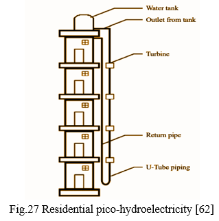 The pico hydro system makes advantage of the energy stored in the water reservoir, which is used to power the system. The water in a residential building's water tank with a minimum 3m head can be used to generate pico power. [64]