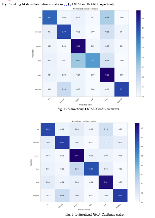 This paper investigated many Machine Learning models and RNNs. By seeing the above results we can conclude that the RNNs are performing better than the traditional machine learning algorithms in text emotion detection. Since, LSTM and GRU are the sequential models that are mainly used for NLP, they give better results. And we can conclude that statement experimentally by proving Bi LSTM (78.25% accuracy) and Bi GRU (78.70% accuracy) are giving better results.