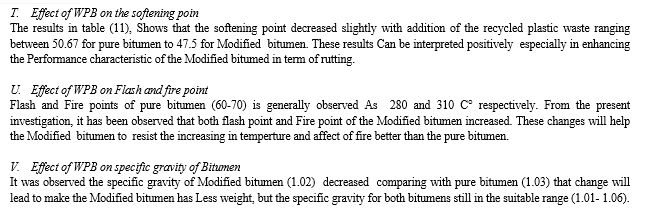 The following conclusions can be derived based on experimental work findings for WPB modified asphalt mixtures compared to regular asphalt mixtures: