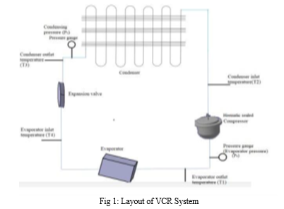 1) The above review has been studied and it is found out that there are number of processes in VCR system. To obtain the human comforts, less power consumption, to increase the COP of the system 2) The water generator, made from air-conditioning and dehumidifier parts, generated an amount of water enough to supply a regular household’s drinking needs. 3) A model test was conducted to investigate the cooling performance of a VCRS protype in warm seasons. 4) Hydrocarbon mixture shows favorable results on theoretical horse power required to drive the compressor. The power required for hydrocarbon mixtures was 38% less than the R-12 refrigerant for same experimental condition. 5) Hydrocarbon mixture shows favorable results on theoretical horse power required to drive the compressor. The power required for hydrocarbon mixtures was 38% less than the R-12 refrigerant for same experimental condition. 6) All the observations and the readings in this simulation will be verified with actual data from the proposed experimental set up. 7) The present study also shows the impact of different parameters which need to be optimized so as to increase the performance. The above review has been studied and it is found out that there are number of processes in VCR system. To obtain the human comforts, less power consumption, to increase the COP of the system.