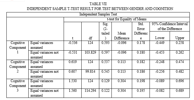 The results suggest that there is no statistically significant evidence to support the claim that there are differences in cognitive responses based on gender among individuals exposed to subliminal messages in digital marketing, based on the data and the statistical analyses conducted for each cognitive component.