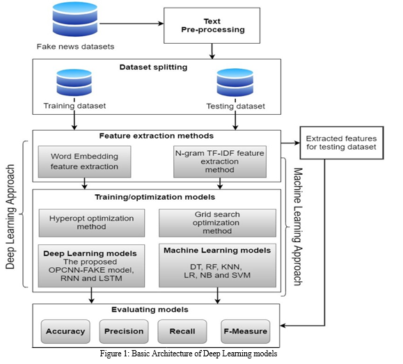 In the OPCNN-FAKE: Optimized Convolutional Neural Network for Fake News [1]. Detection Optimized Convolution Neural Network gave the best performance when compared to machine learning models like LR, SVM, DT, RF, KNN, NB and deep learning models of RNN and LSTM.