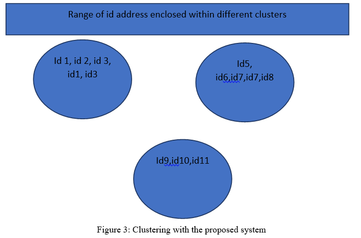 Figure 2 describes the similarity-based clustering is done within segmentation phase. The mechanism is described through the following diagram. Figure 3 describe the cluster-based approach for the proposed approach. Cluster 1 and cluster 2 contains ids that are similar based on attribute ip address. Cluster 3 represents unique ids thus no fake profile exists in this case. Cluster identification numbers are obtained using Raphson method discussed in next section. INTERATIVE RAPHSON METHODfinds the similarity between same profiles-based users and calculates that similarity based on historical rating of similar items-based neighboring given by all users. INTERATIVE RAPHSON METHOD classified user’s categories into fake and genuine.