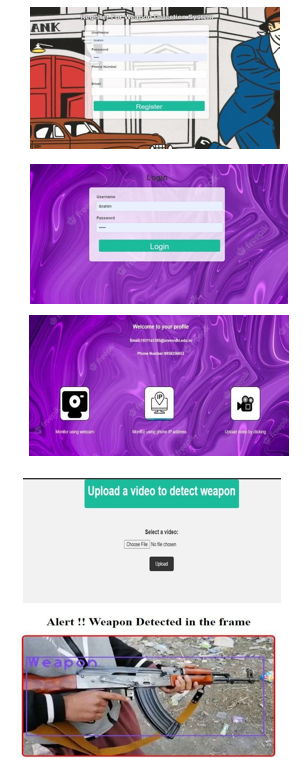 Weapon is detected in uploaded video Step 5: email is sent to respected user provided mail
