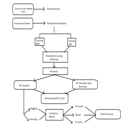 Machine learning model is built with different algorithms that is trained by information and data set provided which predict new classification as “fraud” or “not” These algorithms implemented for building model that is trained using historical data and that predict unseen data with most matching features and then model is tested and validated to evaluate its performance. At first, we have taken the insurance claim dataset (raw) then, preprocessing activities are carried out to improve the quality of dataset .In preprocessing dataset we reduced reduce redundancy of data. Under preprocessing step we cleaned the dataset, the null values, we did normalization of data removed the outliers. Encoded variables dividing the data we used sclera library. In training phase development of model using machine learning is done. We calculated performance of model with respect to accuracy parameters .In testing phase model tested for unknown datasets. Result is calculated on basis of confusion matrix, precision recall and f1 score. And selected better model. The final model will detect the frauds caused.