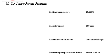 ZrO2 primary reinforcement materials make up 6% of the AA6061 used in the fabrication of hybrid MMCs, while C secondary reinforcement materials make up the remaining 2%. Metal matrix composites (MMCs) can be produced using a variety of methods, but the Stir Casting Process offers the best chances of achieving commercial goals.