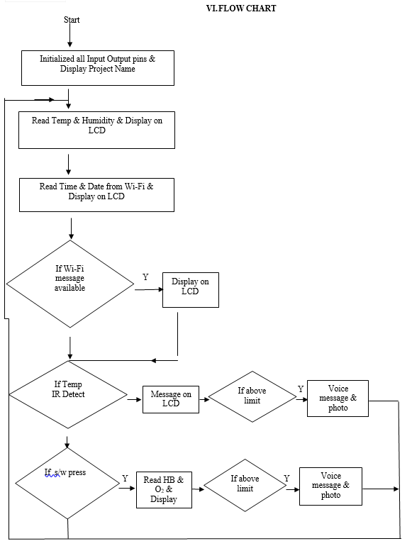 Voice Playback System:The Voice Playback system module works on 5V. Maximum 8 messages can be recorded and played. This model gives instructions to the person when it is infront of the smart mirror. In case temperature of person is more than threshold value then this voice module will give warning alarm.