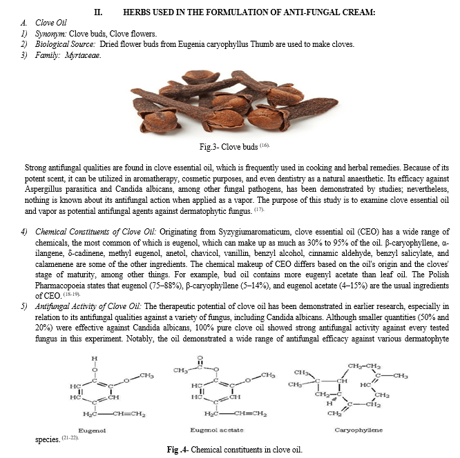 Onychomycosis is a frequent fungal infection of the nails that is difficult to cure and is not well controlled by standard medications, therapeutic options are limited. Herbal remedies have drawn interest as a result of this due to their potential as complementary therapies. The composition and effectiveness of a novel herbal anti-fungal cream that combines the powerful anti-fungal qualities of clove oil, turmeric, and pure peppermint are examined in this abstract. The strong anti-fungal properties of clove oil\'s high eugenol content are enhanced by curcumin, an anti-inflammatory and anti-microbial compound found in turmeric. Pure peppermint contributes antifungal and calming qualities as well as a pleasant element. The combination of these components offers a viable way to cure onychomycosis, possibly more effectively than conventional therapies because it is all-natural.