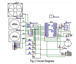 The proposed system as shown in Fig. 1 for hydroponic multilayer farming with IoT integration aims to revolutionize agricultural practices by enabling real-time monitoring, control, and optimization of various components within the hydroponic setup. The system encompasses a comprehensive networking infrastructure designed to enhance crop yield, resource efficiency, and remote accessibility.