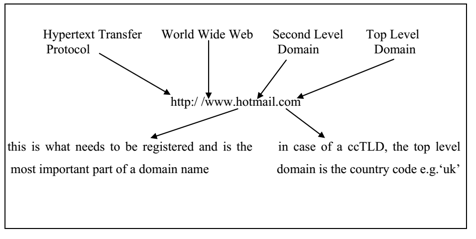 Domain names are read from right to left, and are divided into ‘levels’. The ‘top level domain’ (TLD) corresponds to either the generic type of organization or the geographic origin of the organization. The ‘second level domain’ (SLD) portion of the domain name appears directly before the TLD and is the key feature of the domain name. The SLD portion of the domain name establishes the unique identity of an entity on the internet.34 The prefix ‘www’ is a standard for all World Wide Web addresses.